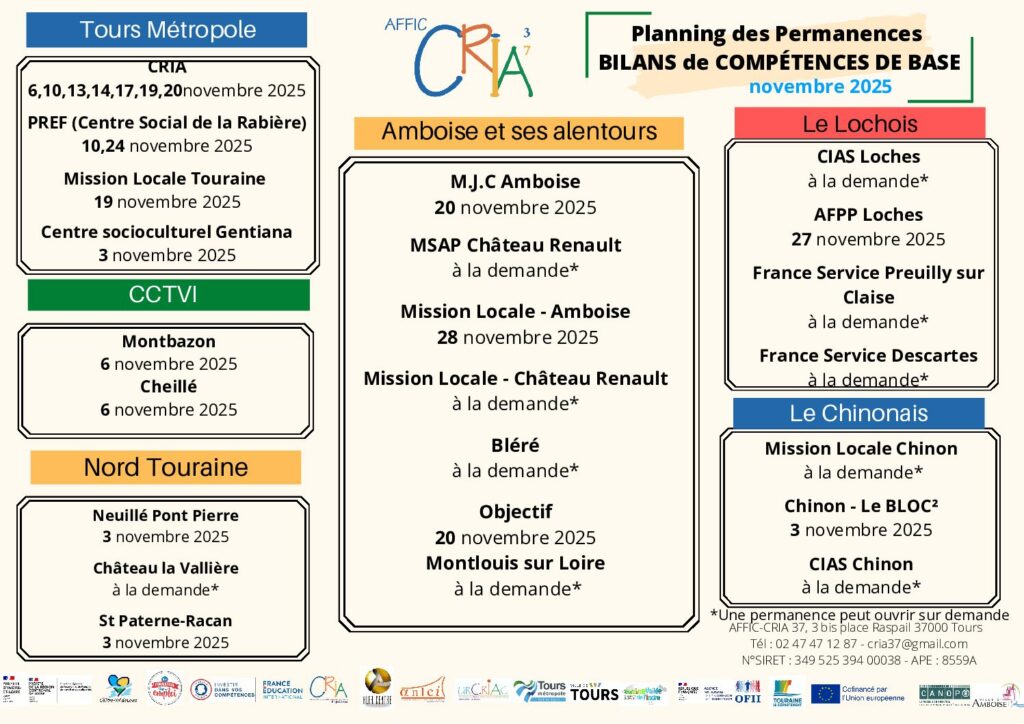 Le CRIA 37 propose, tout au long de l’année et sur l’ensemble du département d’Indre et Loire, des bilans « Compétences de base » permettant une orientation adaptée aux besoins des personnes.