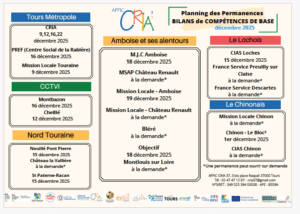 Le CRIA 37 propose, tout au long de l’année et sur l’ensemble du département d’Indre et Loire, des bilans « Compétences de base » permettant une orientation adaptée aux besoins des personnes.